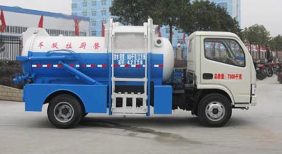 运送介质品名:泔水;介质密度:800千克/立方米,罐体有效容积:4.2立方米.罐体外型尺寸(mm):直段长×直径3200×1300,随底盘选装驾驶室,选装自卸功能高度(mm):2900。额定载质量3265kg对应驾驶室准乘人数2人;额定载质量3200kg对应驾驶室准乘人数3人;侧防护材料为Q235碳钢,右侧面提升机代替部分侧防护,左侧面侧防护为整体结构, 连接方式:焊接在付车架大梁上,后防护材料为Q235碳钢,连接方式:用结构连接件固焊在主车后端, 后部防护断面尺寸(mm):100×50×5,后部防护离地高度(mm):480。 .